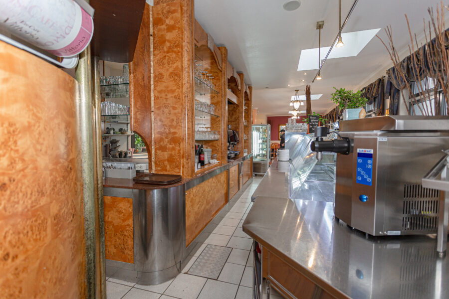 Im Jahre 2000 wurde das Café mit viel Aufwand renoviert und auf einen qualitativ hohen Standard gebracht. Hochwertiger Marmor und eine neue Außentheke lassen erkennen, dass hier stets auf Qualität geachtet wurde. Das gesamte Mobiliar, sowie auch die technische Ausstattung wie Kühlung, Barista-Automaten, elektronische Kasse und das gesamte Kücheninventar kann zusätzlich erworben werden.
