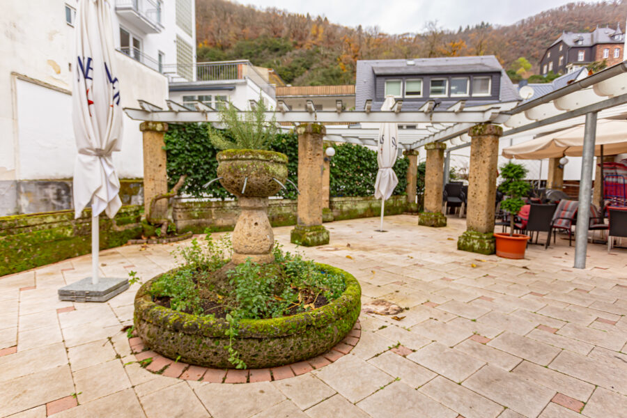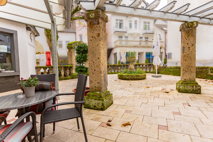 Inmitten der malerischen Fußgängerzone des schönen Kurortes Bad Bertrich gelegen, zeigt sich dieses Café als lukratives und bei den Gästen sehr beliebtes Eiscafé. Es handelt sich hier um ein Café mit Tradition, welches aufgrund seiner Ausstattung, seiner wunderschönen Außenterrasse und der Größe ein wirklicher Blickfang ist. 240 Gäste finden hier Platz, davon alleine etwa 110 Personen im Außenbereich.