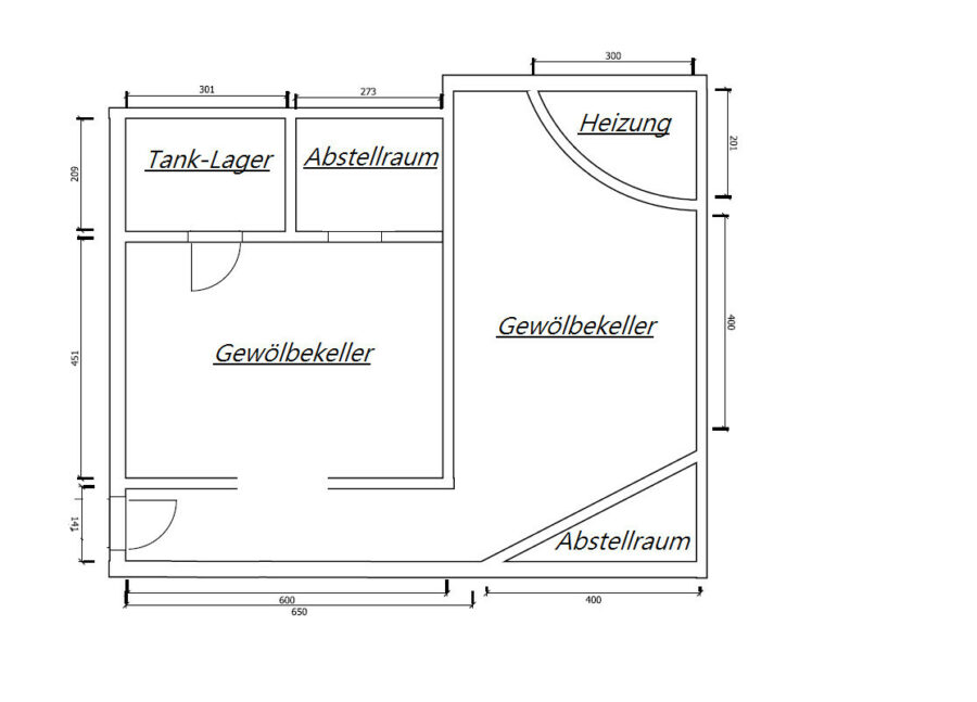 voll unterkellert: Heizungsraum, Gewölbekeller, Abstellräume, von innen und außen zugänglich.