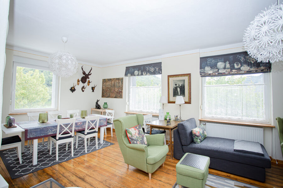 Diese schöne Immobilie mit Moselblick stammt aus dem Jahr 1916 und ist perfekt für die Familie mit Kindern geeignet oder aber als Ferienhaus mit 3 separaten Ferienwohnungen. Sie wurde 2011 umfassend renoviert und bietet viel Charme, Platz und Außenfläche. Hell und modern präsentiert sich das Walmdachhaus und alte Dielenböden und Holztreppen verleihen dem Haus einen wohnlichen und extravaganten Charakter. Diese Kombination aus Alt und Moderne macht dieses Haus besonders. Beginnend im Eingangsbereich begehen wir über den Flur mit Tür zur Terrasse die große Küche. Hier ist ausreichend Platz, um einen Essbereich zu platzieren. Ebenso bestehen auch im lichtdurchfluteten Wohnzimmer mit über 30 m² viel Gestaltungsmöglichkeiten, um hier Wohnen und Essen optimal zu vereinen. Das Schlafzimmer im Erdgeschoss verfügt über ein Bad en Suite und das Gäste-WC auf dieser Ebene besitzt noch eine Dusche. Hier befindet sich zudem der Zugang zum Keller. Auch in diesen Zimmern sorgen große Fenster für viel Licht.