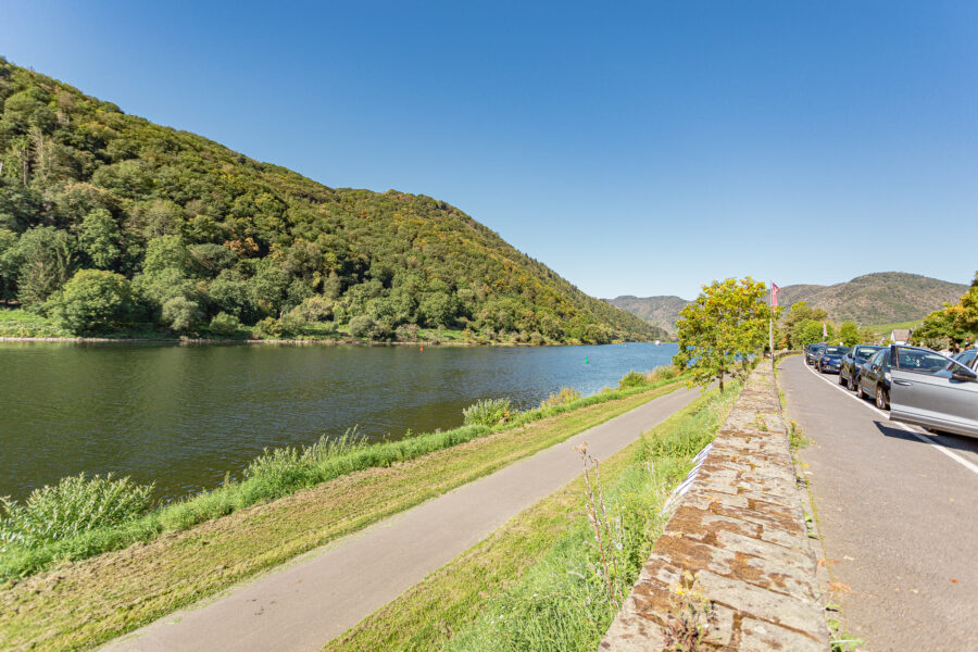 Das Haus liegt in Ediger-Eller an der Mittelmosel, Landkreis Cochem-Zell. Eingebettet zwischen Mosel und Weinbergen liegt dieser malerische Weinort in der berühmten Calmont-Region, unweit des steilsten Weinbergs Europas. Geprägt vom Tourismus besteht der Ort aus unzähligen Winzerstuben, Restaurants und Pensionen. Beim Spaziergang durch die kleinen Gassen lässt man sich nur zu gern einfangen vom Anblick der schön restaurierten alten Fachwerkhäuser. Die Lage des Ortes lässt viel Abwechslung übrig durch die Nähe zu Cochem mit einer guten Infrastruktur und natürlich den Urlaubs- und Weinorten wie Bremm oder Beilstein. Nach Trier braucht man mit dem Auto nur eine Stunde und Kastellaun im Hunsrück liegt 30 Fahrminuten weit entfernt. Dinge des alltäglichen Bedarfs lassen sich bequem in Cochem einkaufen und erledigen. Ärzte, Lebensmittelmärkte, Krankenhaus und eine wunderschöne Altstadt warten auf Ihren Besuch. Noch entspannter fährt es sich natürlich mit der Bahn, Ediger-Eller hat einen Bahnhof mit Anbindung an Cochem, Trier und Koblenz.