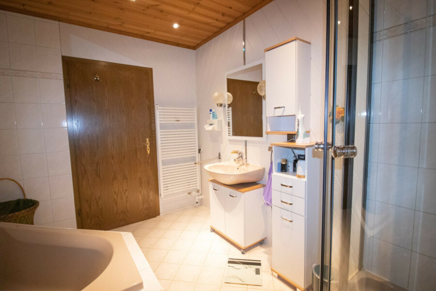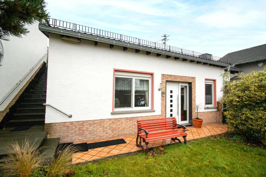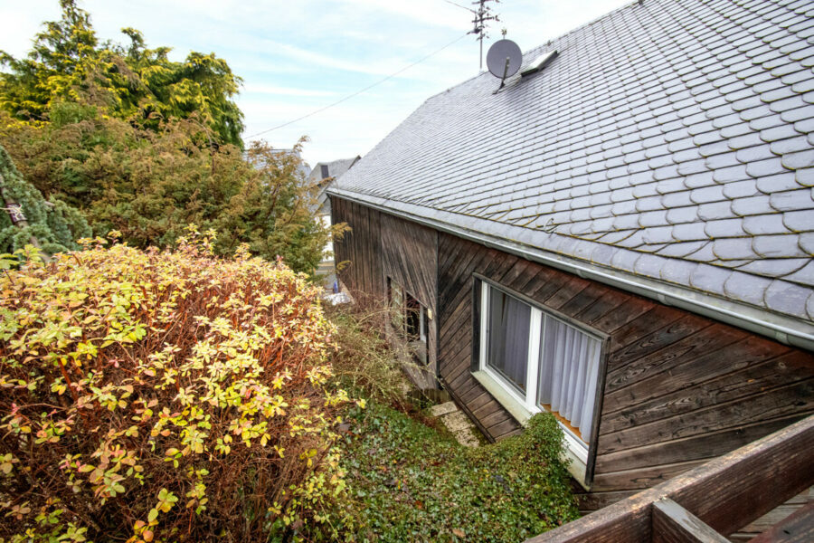 Ursprünglich in den 60er Jahren als Gaststätte erbaut, wurde diese Immobilie in 1987 erstmalig zu einem Wohnhaus umgestaltet. Als die jetzigen Eigentümer die Immobilie in 1993 erworben haben, fanden hier umfassende Sanierungs- und Modernisierungsmaßnahmen statt. Unter anderem, wurden drei sich teilweise im Erdreich befindliche Seiten freigelegt und von einer Fachfirma mit Drainage versehen und das Dach wurde mit Naturschiefer und hochwertigen Kunststoff-Pfannen gedeckt. Alle Leitungen wurden erneuert und die Räume den Ansprüchen der Eigentümer angepasst. In dem Jahr ist auch die Garage mit dem Hauswirtschaftsraum auf der linken Seite des Grundstücks entstanden.