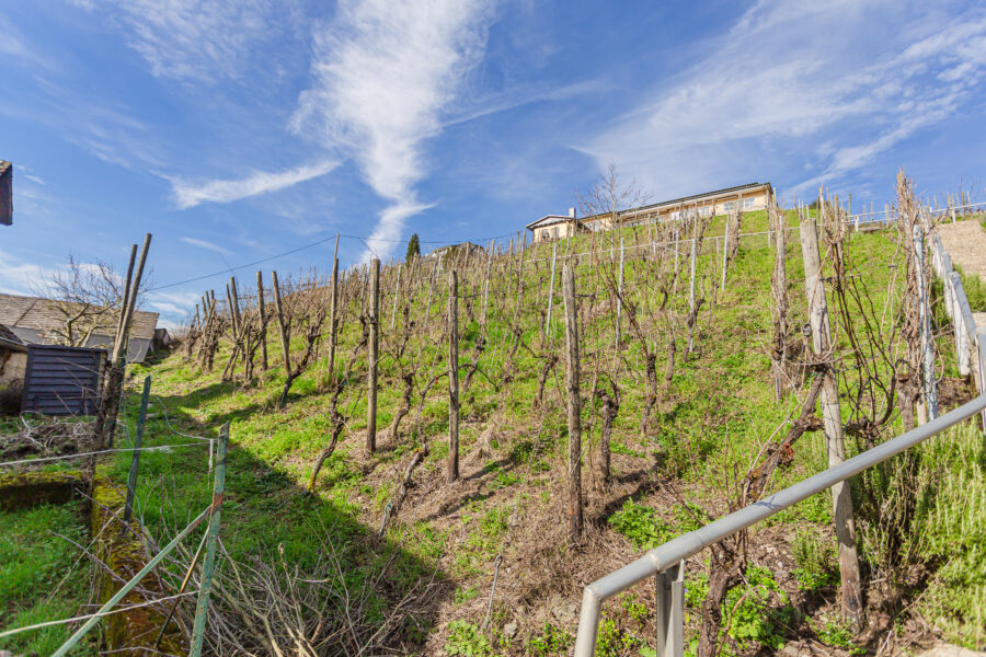 Der Weinberg hinter dem Haus gehört mit zum Grundstück und umfasst etwa 280 m². Das Bauland mit Anschluss an die Kanalisation ist im Kaufpreis inkludiert und bei der Angabe der Grundstücksgröße berücksichtigt.