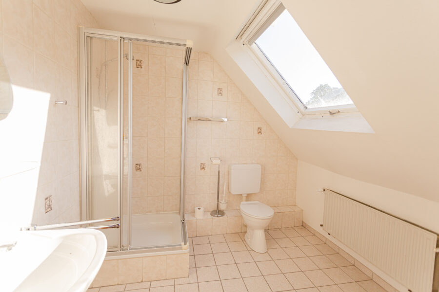 Auch das teilausgebaute Dachgeschoss wartet mit einem Duschbad und einem weiteren Schlafzimmer auf. Der Speicher lässt noch viel Staufläche übrig und ist über eine Leiter zugänglich.