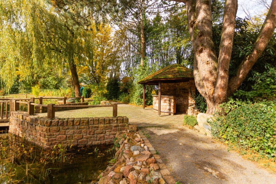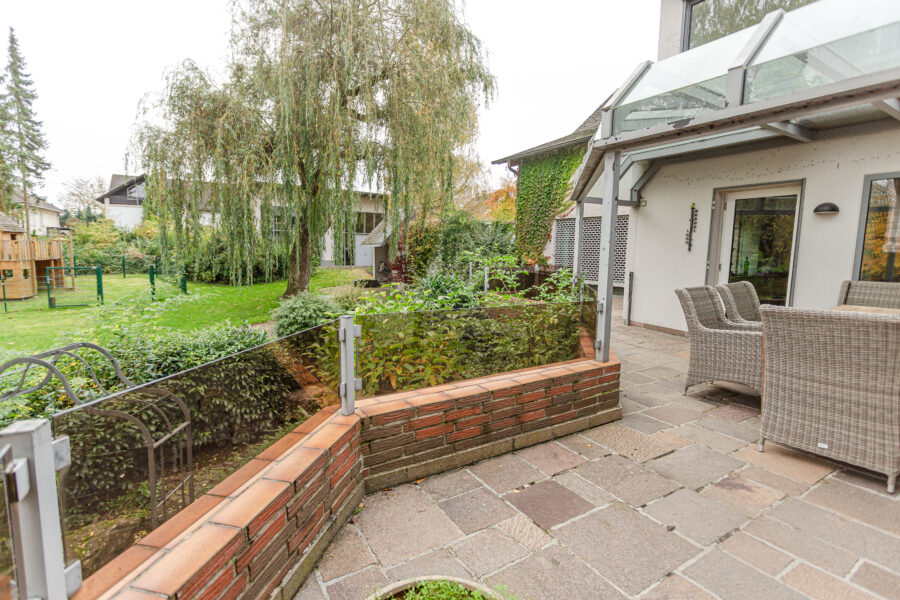 Das komplette Grundstück mit vielfältigem Baumbestand ist eingezäunt und bietet zudem eine Doppelgarage sowie eine Garage für ein Wohnmobil. Für Gartengeräte gibt es praktischerweise einen Extraraum.