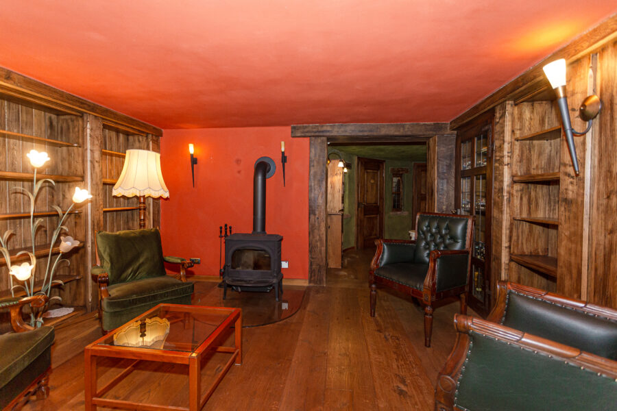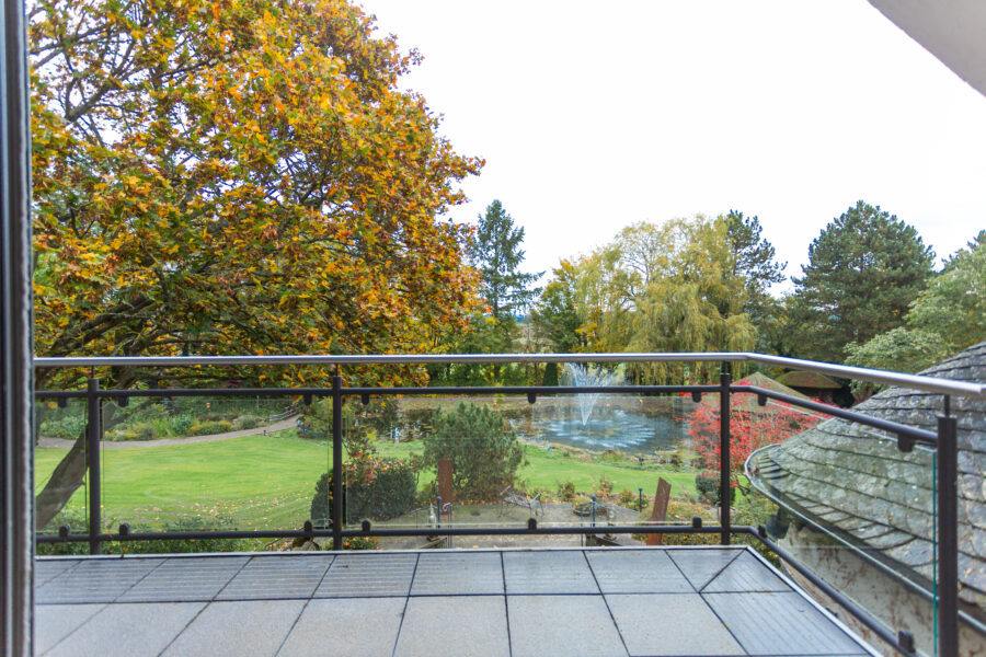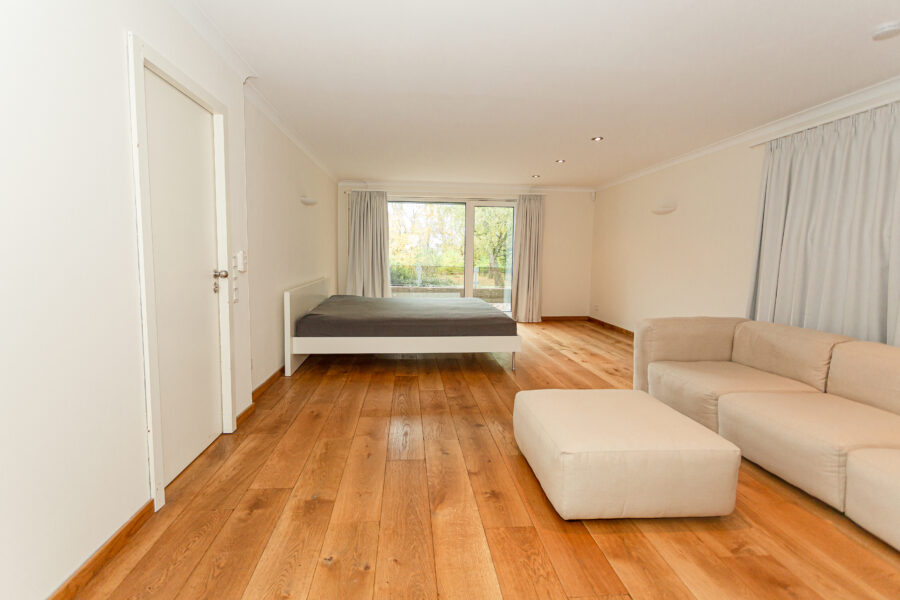 Der separate Anbau bietet vielseitige Möglichkeiten und kann als Gäste- oder Geschäftsbereich genutzt werden. Der Eingangsbereich mit schöner Holztreppe führt in einen Konferenzraum, der sich ideal zu einem großzügigen Wohnzimmer und Küche mit Essbereich mit einer angrenzenden Terrasse umbauen lässt. Das Obergeschoss verfügt über drei Schlafzimmer, jeweils mit eigenem Duschbad, sowie ein großes Schlafzimmer mit Balkon.