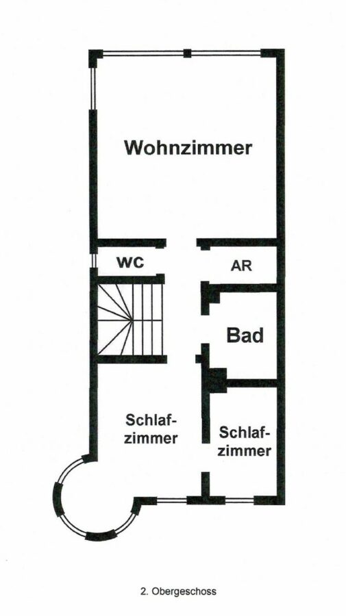 2. OG: 2 Schlafzimmer, großzügiges Wohnzimmer, Duschbad, Abstellraum, Gäste-WC
