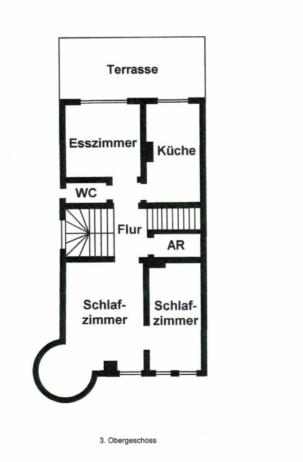3. OG: 3 Zimmer, Küche mit Ausgang zur Terrasse