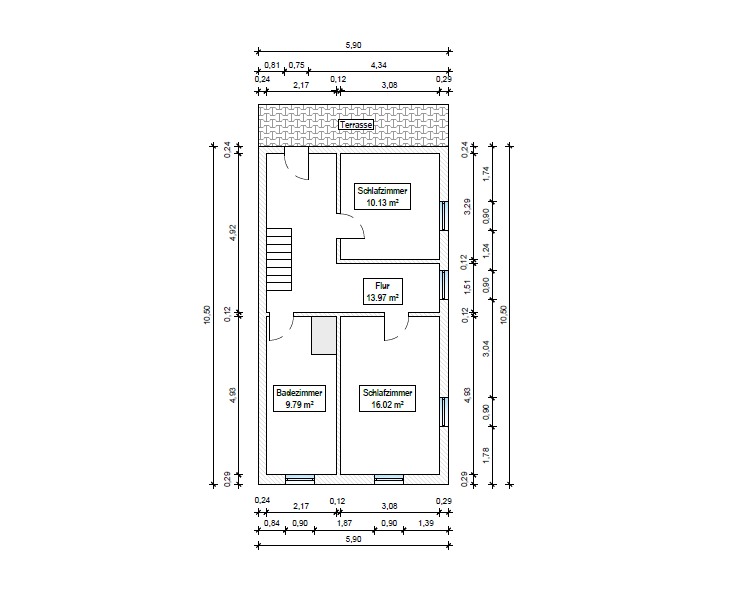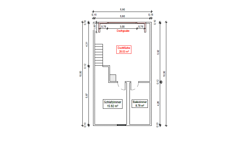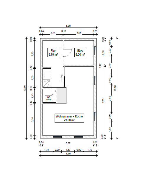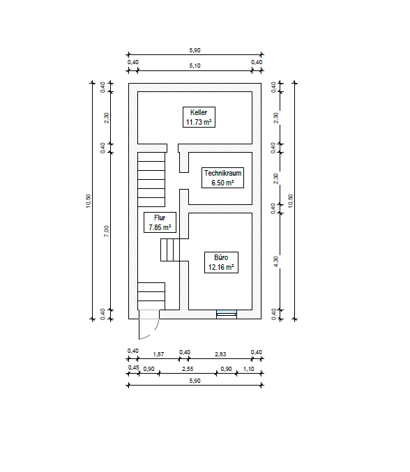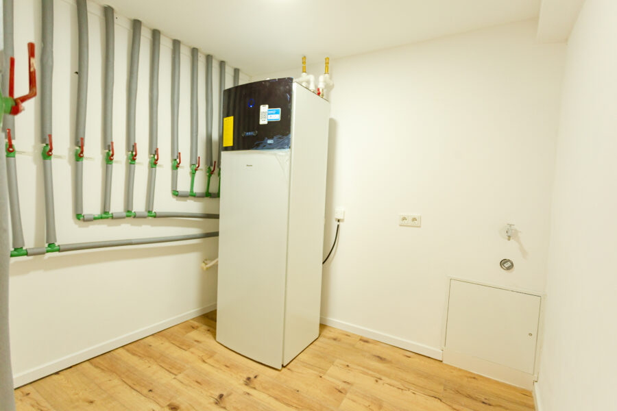 Im Erdgeschoss befindet sich der Technikraum, sowie ein Kellerraum. Ein weiterer Raum, der als Büro genutzt werden kann und zur Wohnfläche zählt, bilden diese Etage ab.