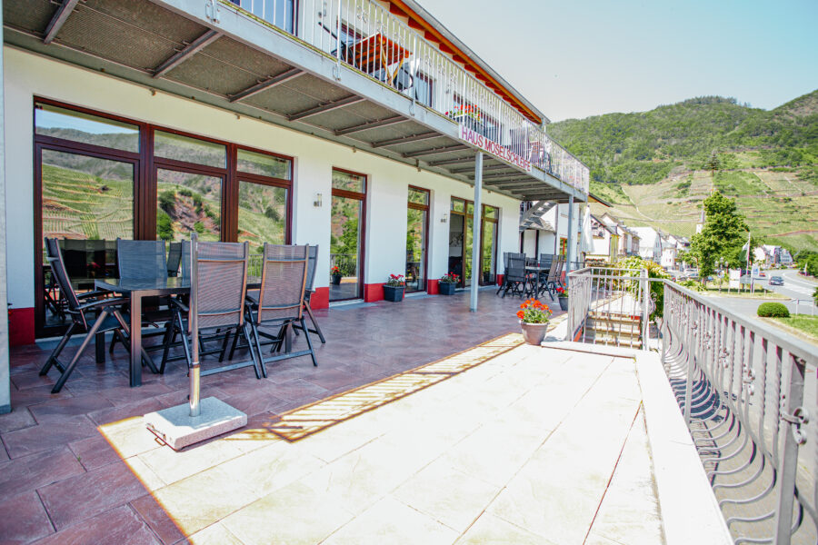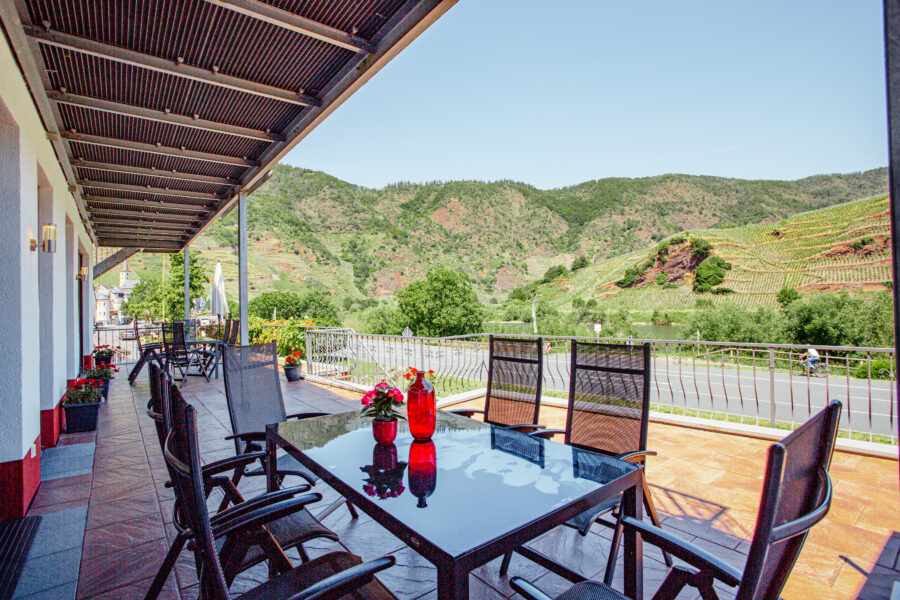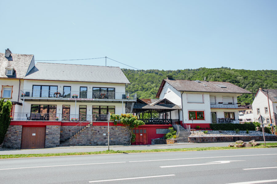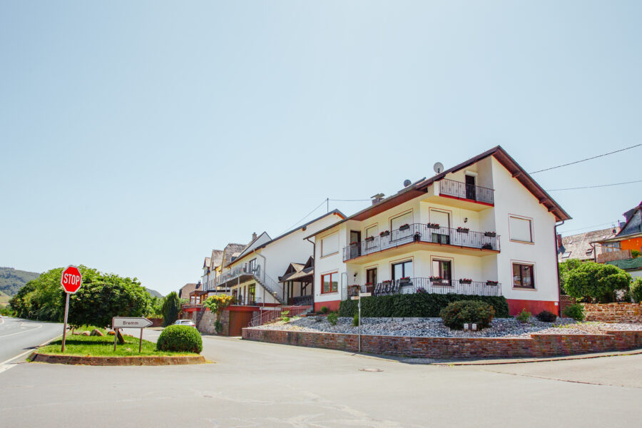 Der romantische Weinort Bremm liegt an einer der schönsten Moselschleifen in der Calmont Region und gehört zur Verbandsgemeinde Cochem. Mit seinen etwa 850 Einwohnern ist Bremm zwar klein, bietet aber mit dem Calmont den steilsten Weinberg Europas und somit ein touristisches Highlight. Das Haus selbst liegt Moselnah und offenbart den Besuchern einen einzigartigen Blick in die Weinberge und auf die Mosel, und das von allen Wohnungen aus.