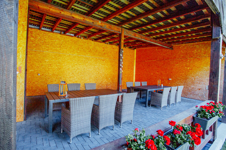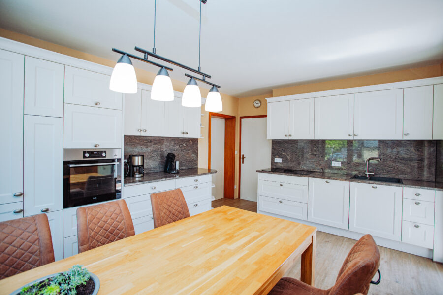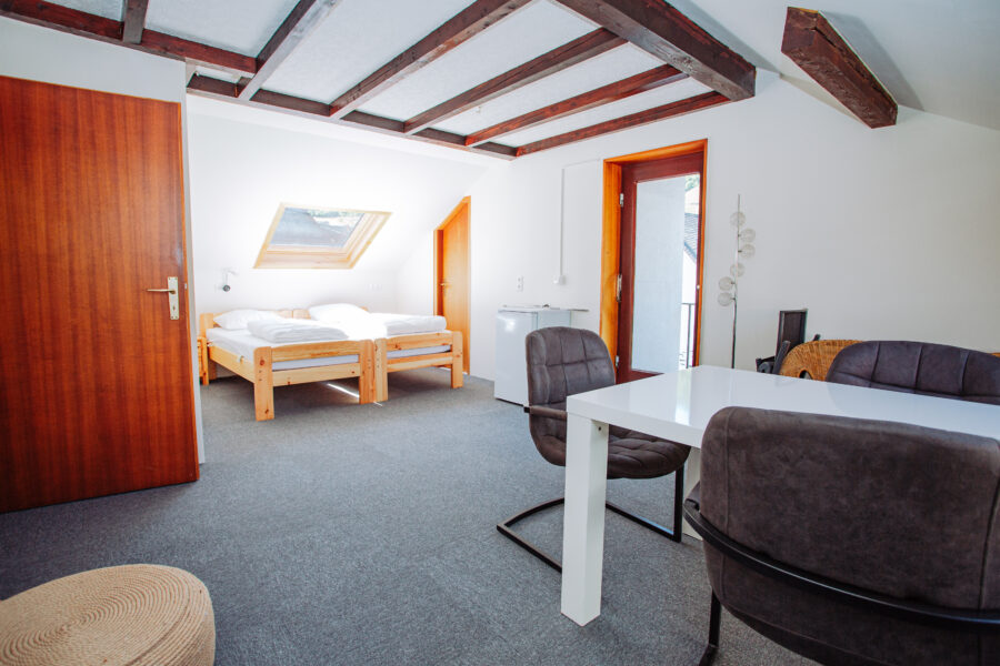 Das zweite Haus auf dem Gelände wurde in 1979 erbaut und dient aktuell als großes Betreiberhaus. Es besteht aus drei Etagen und kann, bei Bedarf, zu einem Mehrfamilienhaus umgestaltet werden und somit weitere Einnahmen generieren. Die Immobilie wurde in den letzten 10 Jahren umfassend renoviert und modernisiert. Unter anderem, wurde hier eine hochwertige Küche eingebaut, die Elektrik zum größten Teil erneuert, das Dachgeschoss fast komplett ausgebaut und alle drei Bäder erneuert. Beinahe jedes Zimmer im EG und OG haben Ausgang zur Terrasse oder einem Balkon.