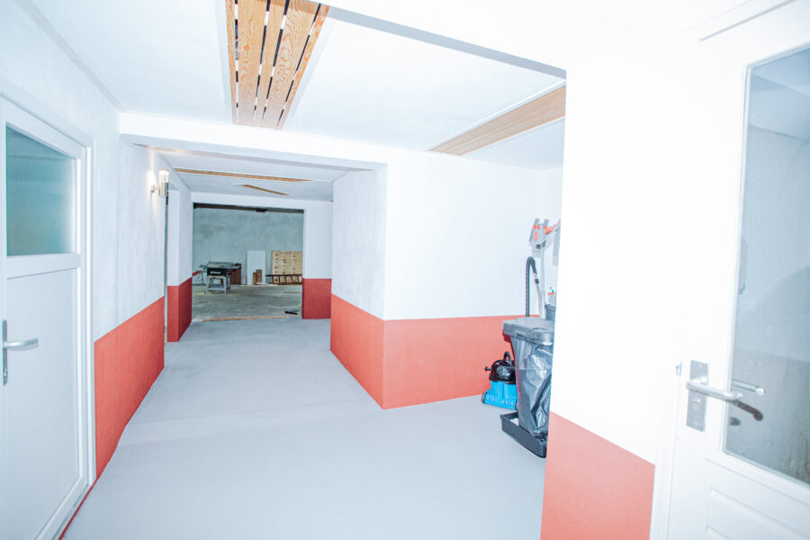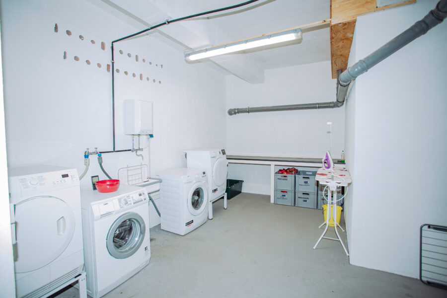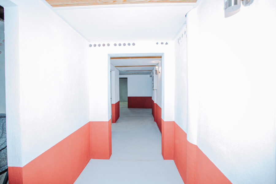Unter dem gesamten Komplex befindet sich eine ca. 400 m² große Kellerfläche, die ebenerdig zugänglich ist. Dank der entsprechenden Vorrichtungen wird dieser bei richtiger Vorbereitung auch beim höheren Hochwasser nicht geflutet.
