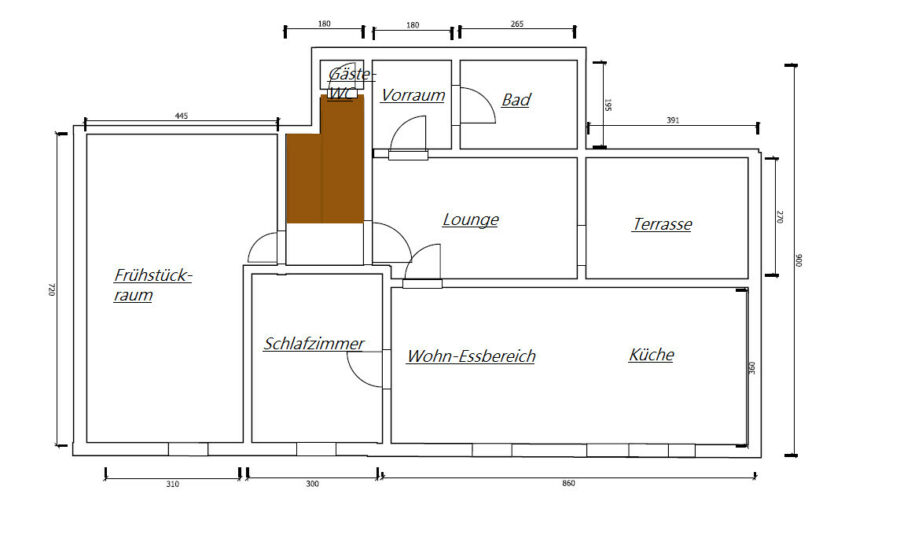 Betreiberwohnung: Küche, Wohnzimmer mit Arbeitsbereich, Schlafzimmer, Lounge mit dem Zugang zur Terrasse, Terrasse, großes Duschbad mit WC.