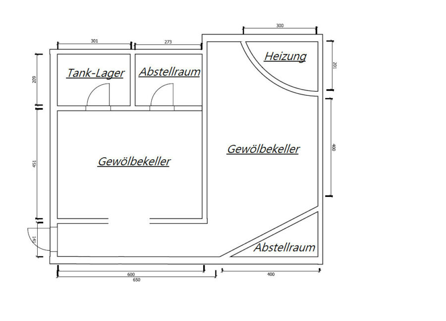voll unterkellert: Heizungsraum, Gewölbekeller, Abstellräume, von innen und außen zugänglich.