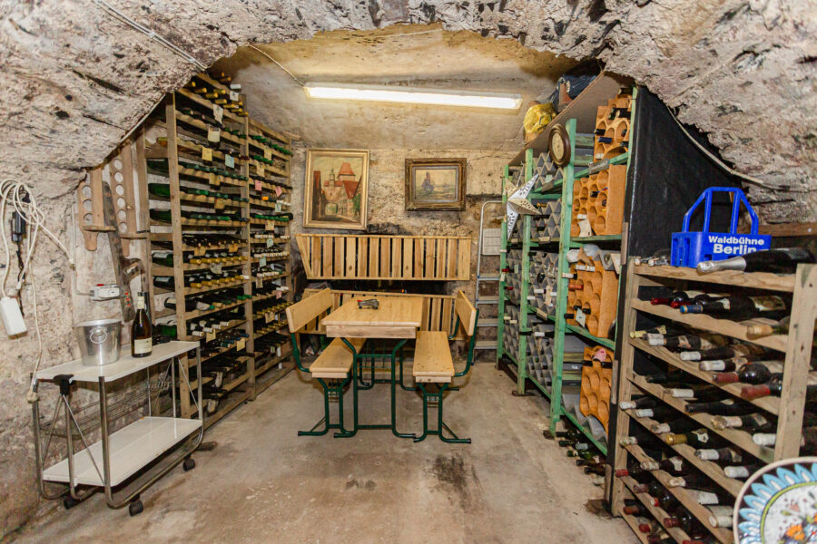 Zu dem Ensemble gehört noch ein wunderschöner Gewölbekeller mit eingebauter Theke und Inventar, für gesellige Stunden und Partys. Die Bilder sprechen für sich, auch hier sind schöne und fröhliche Stunden mit Freunden und Familie garantiert.