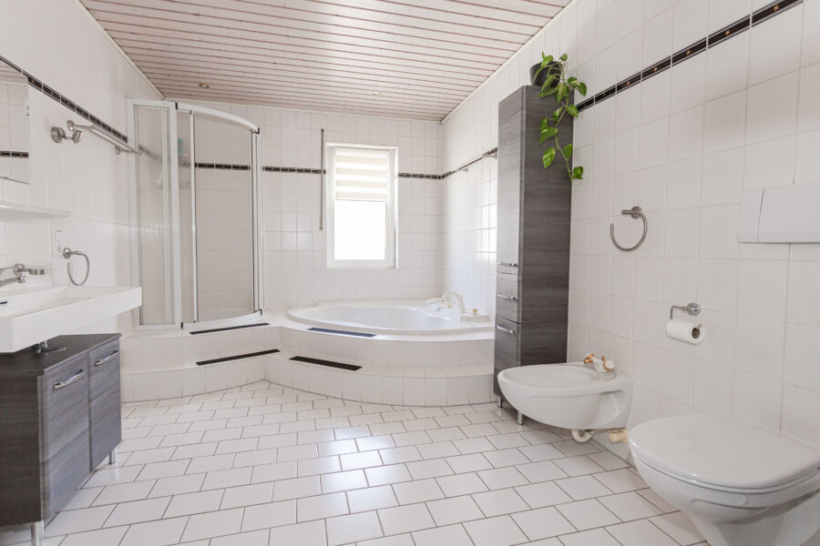 Da das Grundstück eingezäunt ist, kann auch der Vierbeiner hier entspannt laufen. Die hinter dem Haus gelegene Garage ist über einen kleinen Zuweg erreichbar und befindet sich nicht unmittelbar am Haus.